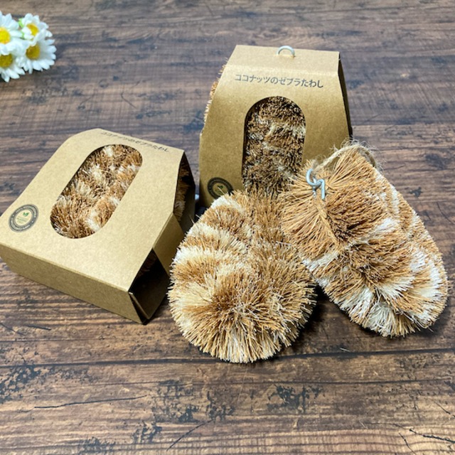 地球に優しいココナッツ繊維のゼブラたわし。ヤシの木は捨てるところがありません。 自然素材でプラスチックフリー マイクロプラスチックも出ないので環境にもやさしい 2種類の繊維を組み合わせています。繊維が柔らかく、 隅まで洗うことが出来ます。 キッチン回りやお風呂場だけではなく、体や爪洗いにもお使いいただけます。 <M DASANAYAKA>のココナッツブラシの特徴 ・プラスチックフリー(生分解性、堆肥化可能) ・ゼロウェイスト ・ヴィーガン(動物を利用した収穫はしていません) ・廃棄物ゼロの農村地でのハンドメイド ・100%エコフレンドリーアイテムとして、スリランカ産業大臣公認 ・繊維の組み合わせ方により、水撥ねを防ぐ 〜ココナッツ繊維の特徴〜 ・淡水・塩水に強い唯一の天然繊維(海洋用途のロープなどにも使用) ・抗菌・防カビの力があり、湿気の影響を受けにくい ・丈夫で耐摩耗性に優れている ・紫外線から保護 <注意事項> ※力の入れ加減で繊維が抜けることがございます。 ※使用後は、水をよく切ってから保管することをおすすめしています。 原材料:ココナッツフェイバー、スチール、麻ひも 重 量:80g 原産国:スリランカ 輸入者:M DASANAYAKA 〜M DASANAYAKA〜 オーガニックにこだわった食品と、環境に優しい日用品を取り扱います。 オーガニックであることは、人にやさしいと同時に自然にも優しく、地球環境に大きな影響を与えることを知っています。 私たちは、あらゆる命を有するオーガニックという概念を大切にします。 エコロジーを意識しながら、商品のパッケージにもこだわります。 エコロジーとは、本来生態学という意味をもつ言葉です。 環境保全や地球環境に負荷をかけないという意味でも用いられ、自然環境保護や人間と自然との調和、共存をめざす考え方でもあります。 私たちはローウェイストと、プラスッチクフリーにチャレンジします。 私たちは、みんなソサイエティーの中で暮らしています。 ソサイエティーとは、社会全体のことを指し、国や地域はもちろん、私たちが住んでいる街ひとつもソサイエティーのひとつです。 私たちの世界は平等であるべきですが、環境問題や貧困問題は深刻です。 私たちは、利益の一部を貧しい子供たちへ寄付することを約束します。