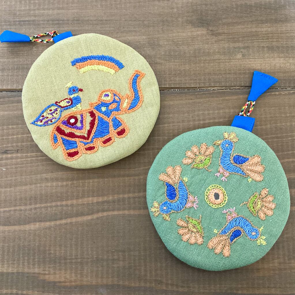 ミラー刺繍 ミニまるポーチ【インドの手刺繍】<フェアトレード>
