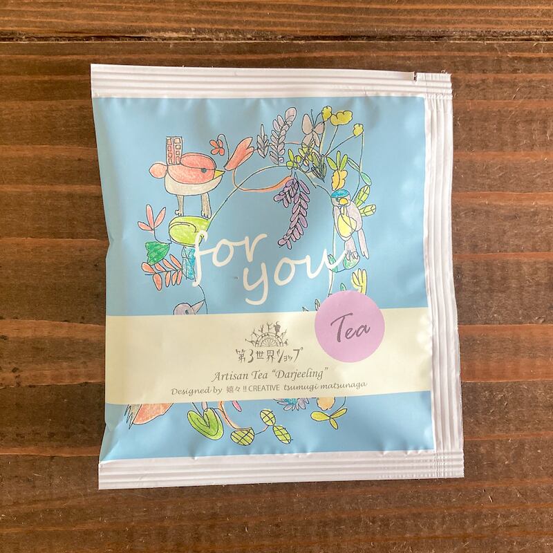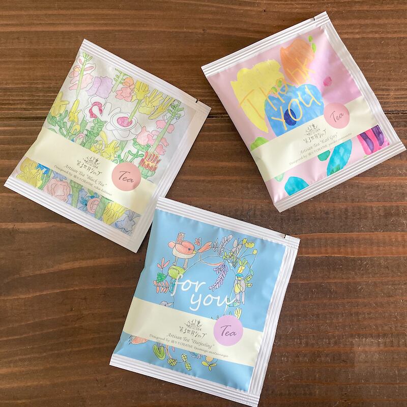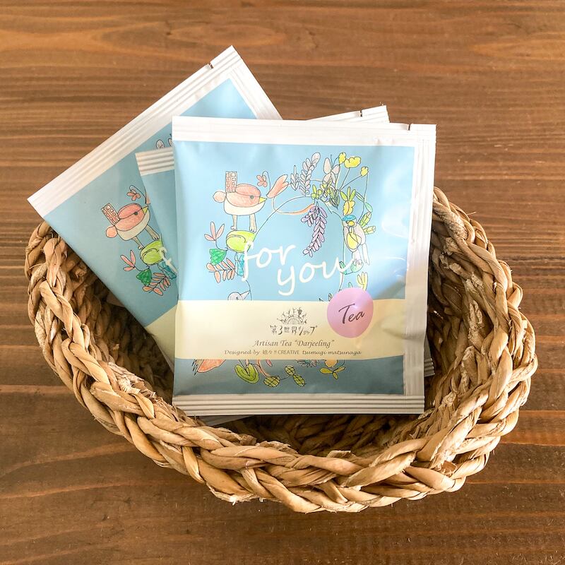 「嬉々!! CREATIVE(キキ・クリエイティブ)」デザインのアートパッケージのオーガニック紅茶にダージリンティーの1包パック。