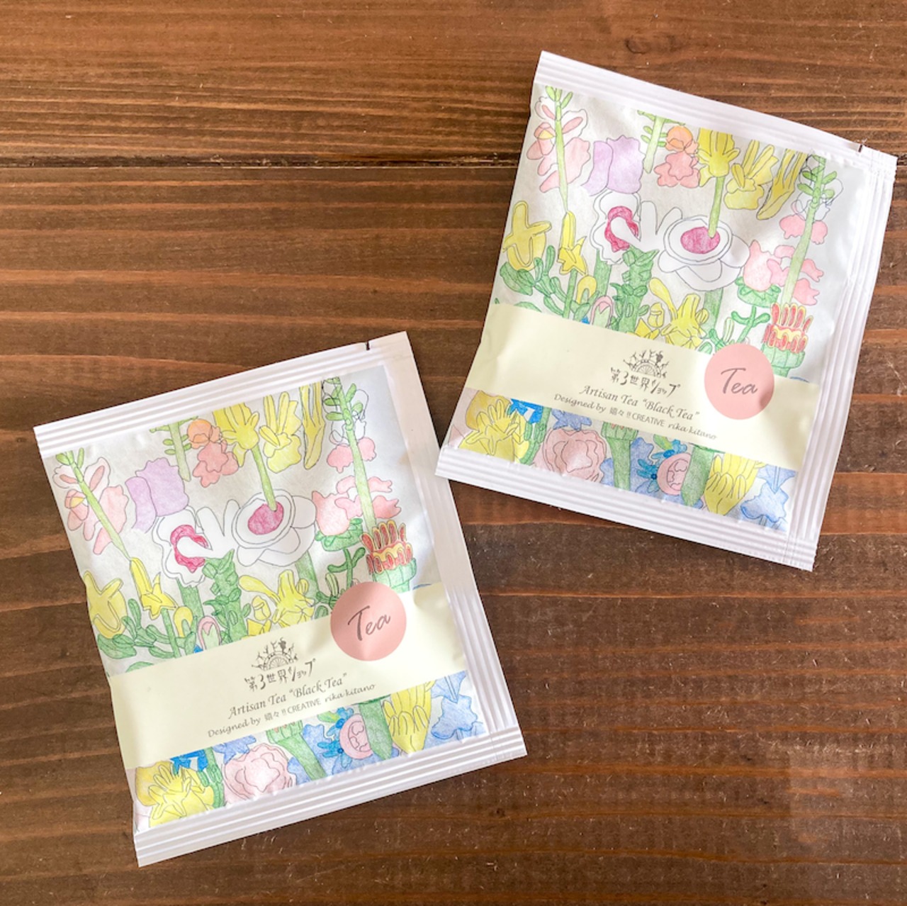 「「嬉々!! CREATIVE(キキ・クリエイティブ)」デザインのアートパッケージのオーガニック紅茶のブラックティー1包パック。