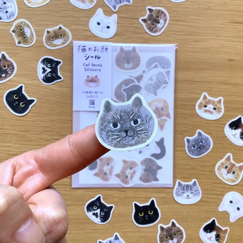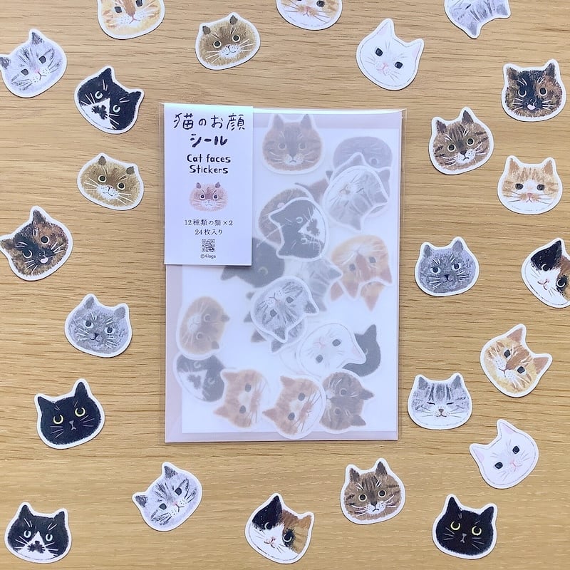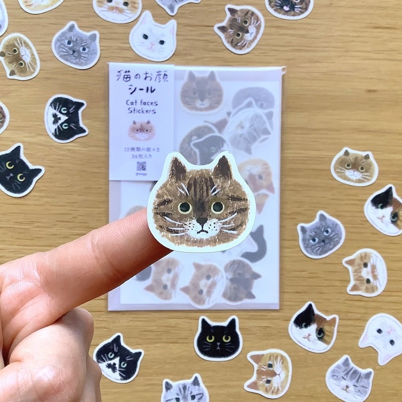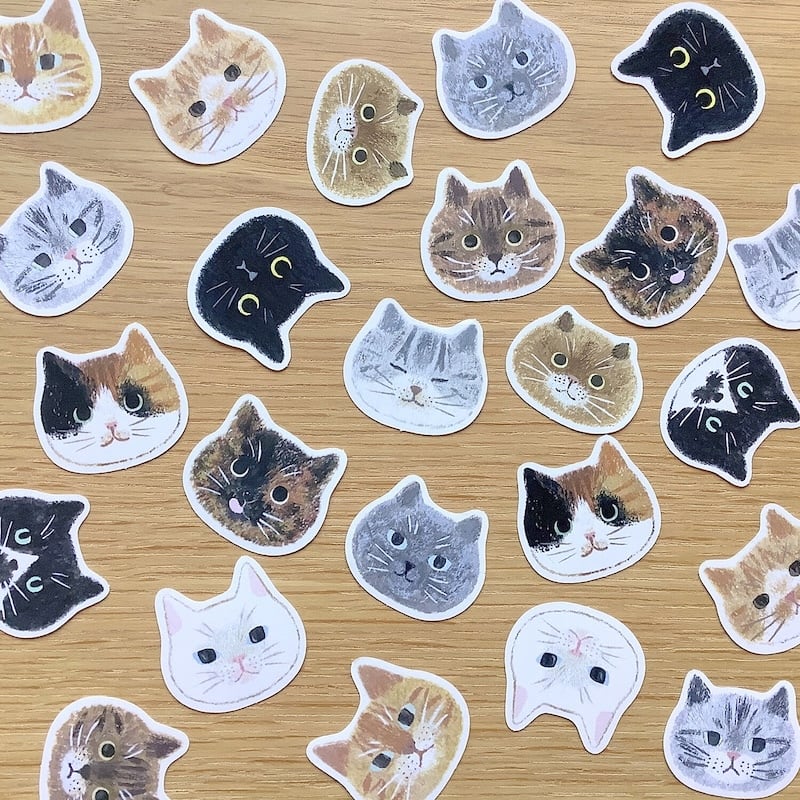 個性の違う12種類の猫の顔を、ひとつひとつ描いたフレークシール。