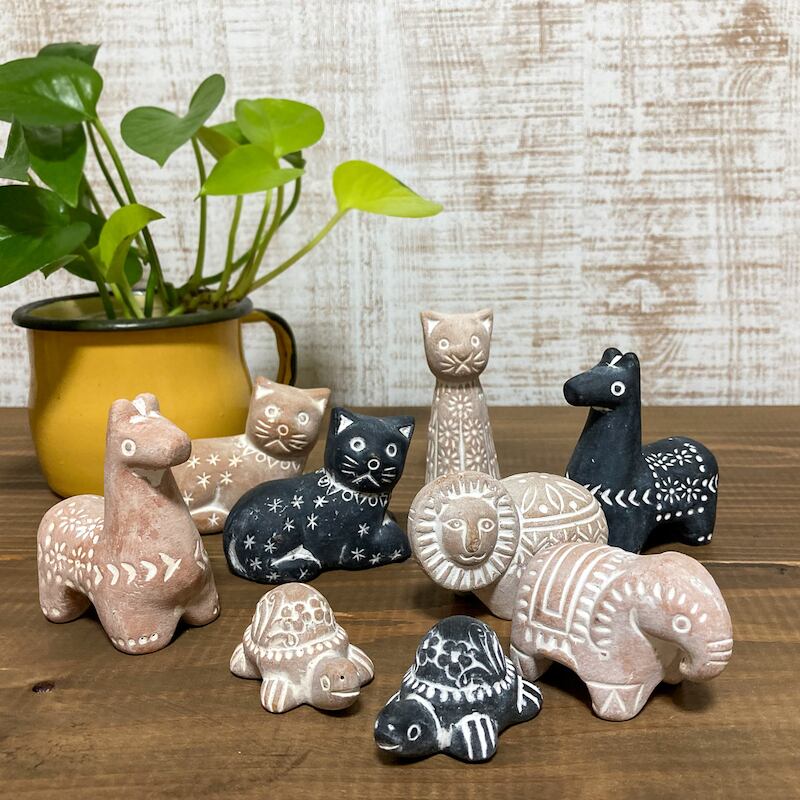 大人気のテラコッタのアニマルシリーズに、フラワーモチーフのウマが加わりました。まん丸な目と太い足がかわいい。