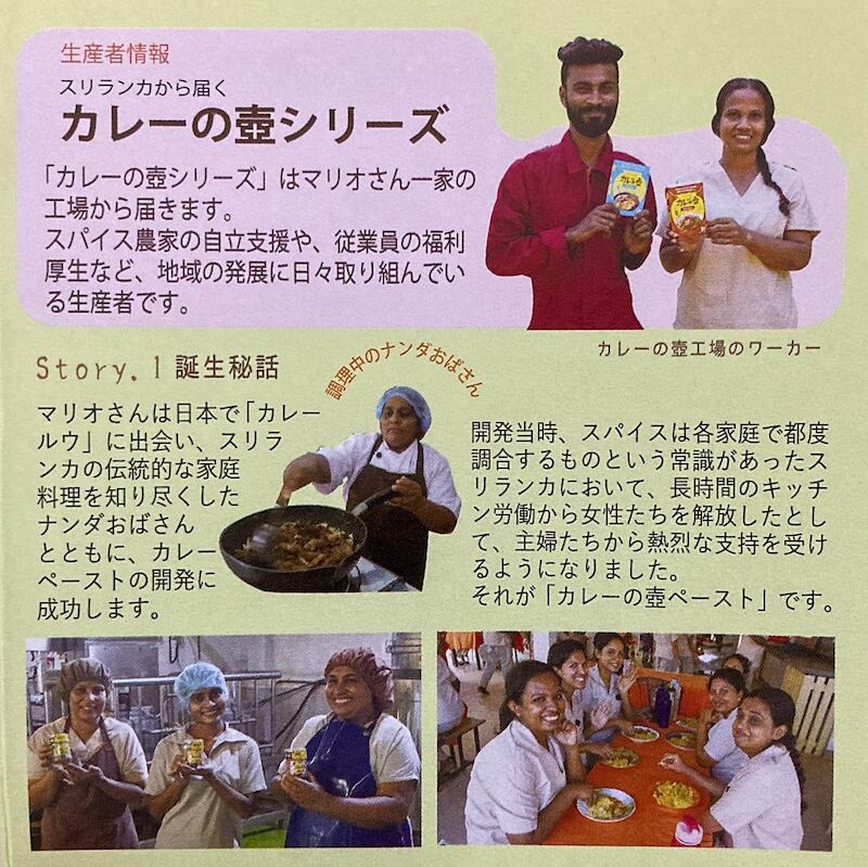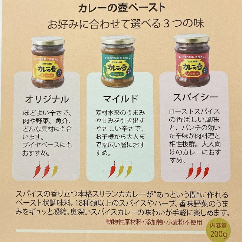 1994年からお付き合いのある生産者のマリオさんは、若いころ日本に来たときに見つけたカレールウからヒントを得て、スパイスを混ぜ合わせたペーストを作りました。スリランカの食文化を世界に向かって発信したいと思っていたマリオさんと、スリランカカレーの個性を生かしながら、日本人の舌に合うように一緒に試行錯誤して作ったカレーペーストがカレーの壺です。