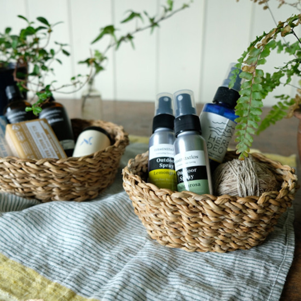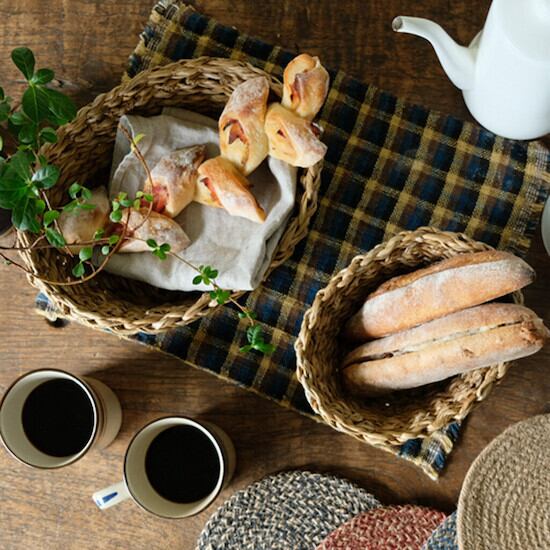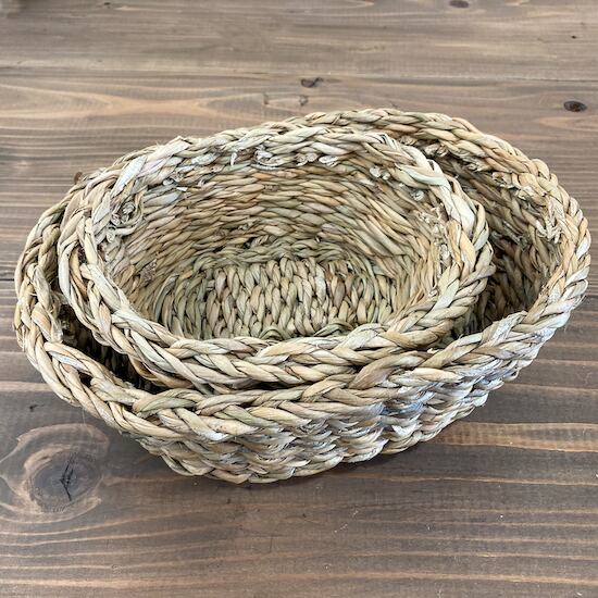 ホグラ(がまの葉)で一つ一つ手編みされたバスケット。