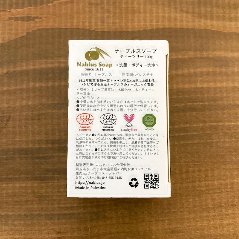 <ナーブルスソープ NABLUS SOAP >ティーツリー(肌荒れ・リラックス)完全無添加 オーガニック石鹸