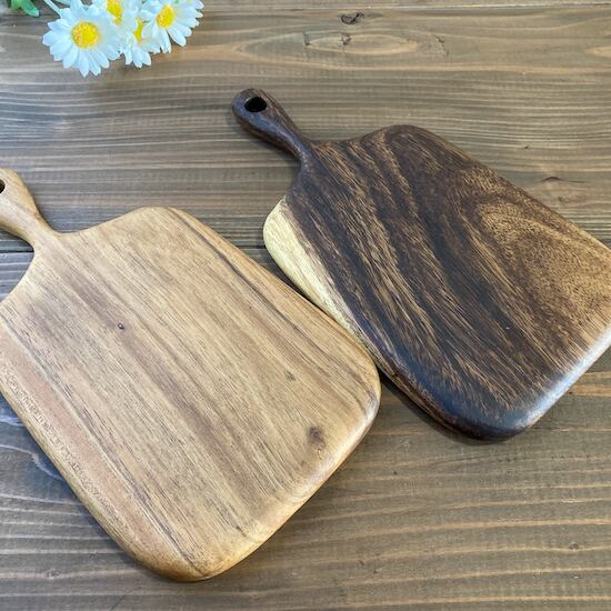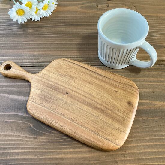 肩のラインに丸みを持たせたカッティングボードは、食材を載せるだけで、いつもの食卓が華やぐアイテムです。