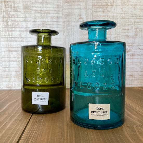 スペインバレンシア地方で1985年から続いている工房で職人の手によって作られた、100%リサイクルガラスのボトル。