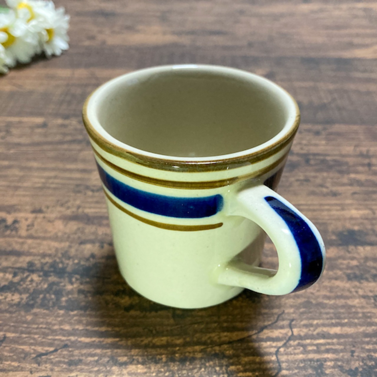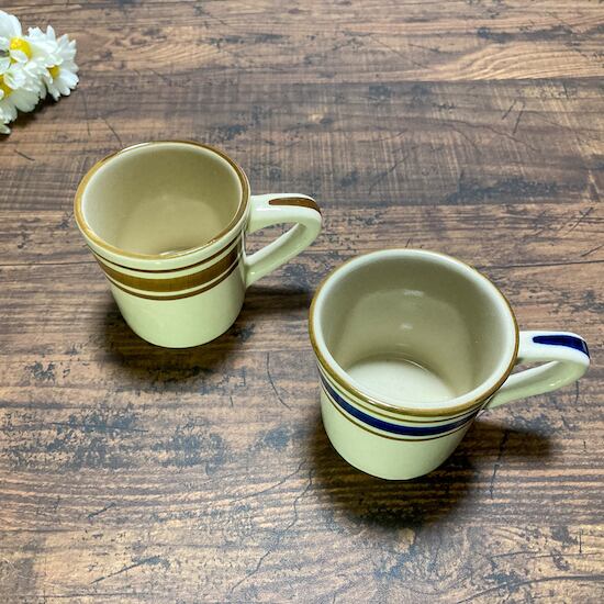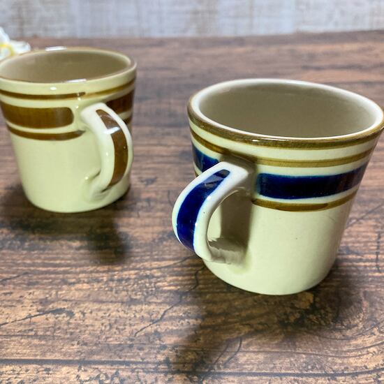 一つ一つ手で描かれたボーダーがなんとも可愛い陶器のマグカップ。