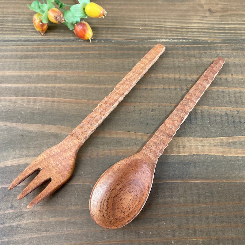 ・自然素材のカトラリーは、使い続けるうちに、表面がガサガサしてまいります。コーティングなどをしていない為、防ぐ事ができませんが、お手入れをしていただく事により、質感も色合いを取り戻すことができます。